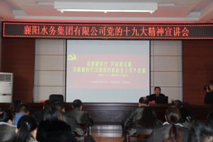 根據(jù)市國資委黨委的統(tǒng)一安排,12月25日下午,市國資委黨委委員、副主任鄧世海來到襄陽水務(wù)集團有限公司開展黨的十九大精神專題宣講。集團公司本部全體干部職工、襄陽中環(huán)水務(wù)有限公司班子成員及基層黨支部書記和黨務(wù)工作人員共50余人參加了學(xué)習。