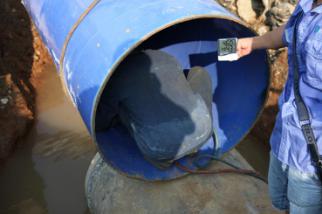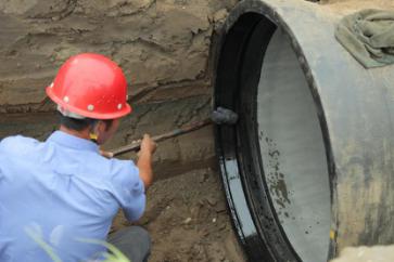 一截管道安裝完畢,王俊鉆進(jìn)了管道中,沿著新鋪設(shè)的這截6米長(zhǎng)的管道,一邊爬一邊觀察,檢查管道接口處的皮圈是否有縫隙,有沒(méi)有受擠壓而外露。見(jiàn)皮圈處平整無(wú)縫,王俊才放心地爬了出來(lái)。盡管當(dāng)天氣溫不高,但管道中密不透風(fēng),讓人喘不過(guò)氣,一趟爬下來(lái),王俊的腦門上布了一層細(xì)細(xì)的汗珠。