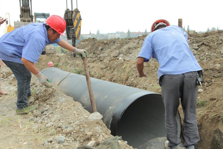 8月31日中上午11時(shí)許,天氣陰冷,烏云低垂,一場(chǎng)大雨即將來(lái)臨。在內(nèi)環(huán)南路-沿江大道段供水管網(wǎng)施工工地上,卻是一派機(jī)器轟鳴、熱火朝天的施工景象。襄陽(yáng)中環(huán)水務(wù)供水工程有限公司第五項(xiàng)目部施工員王俊,正和另外5名施工員一起,鋪設(shè)內(nèi)環(huán)南路-沿江大道長(zhǎng)達(dá)3.2公里、直徑1.2米的供水主管網(wǎng),解決余家湖片區(qū)居民家中水壓低的問(wèn)題。