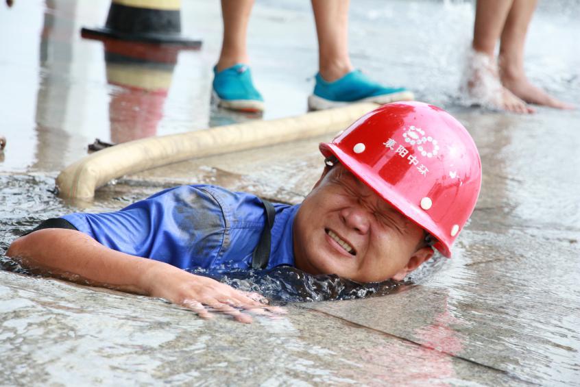 深土溝中作業(yè) 爬進(jìn)管道安檢